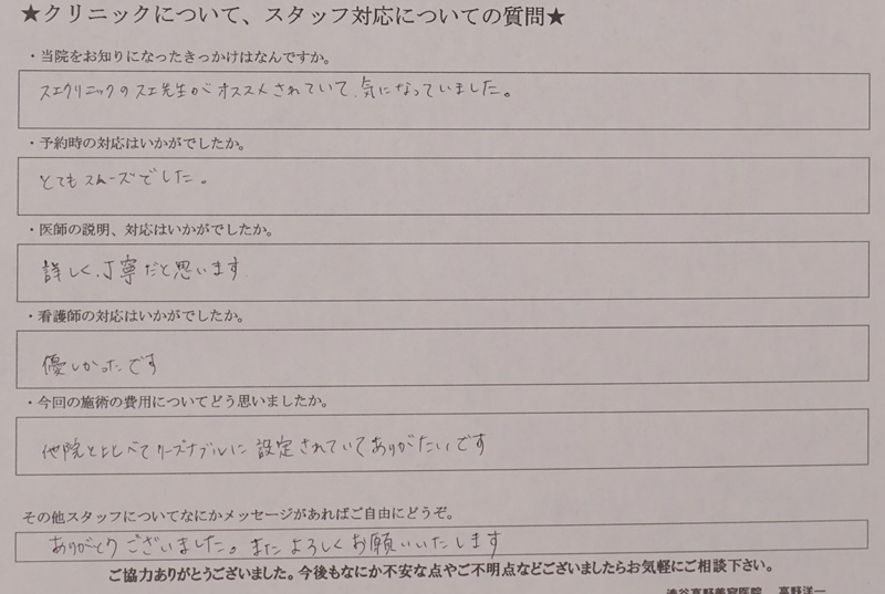 リスクや副作用: •腫れや内出血が出る •左右差が出ることがある •再発する可能性が否定できない