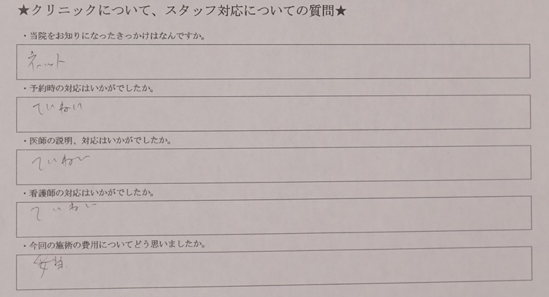 対応に関するアンケート