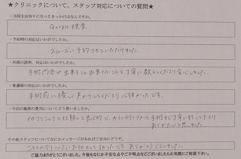裏ハムラ法を受けられた20代女性。