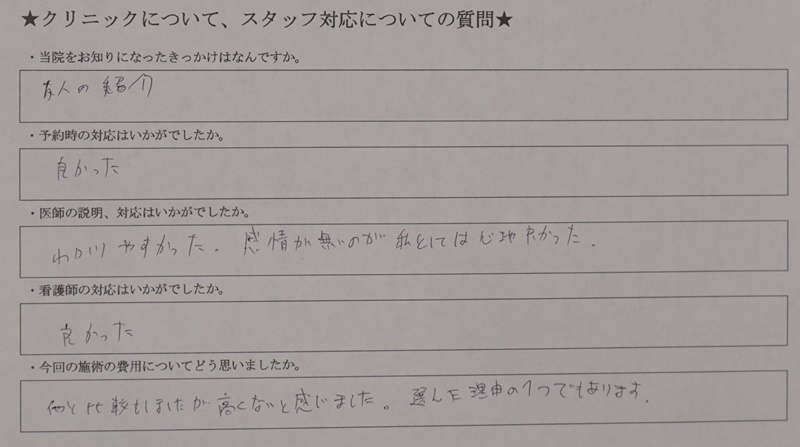 対応に関するアンケート