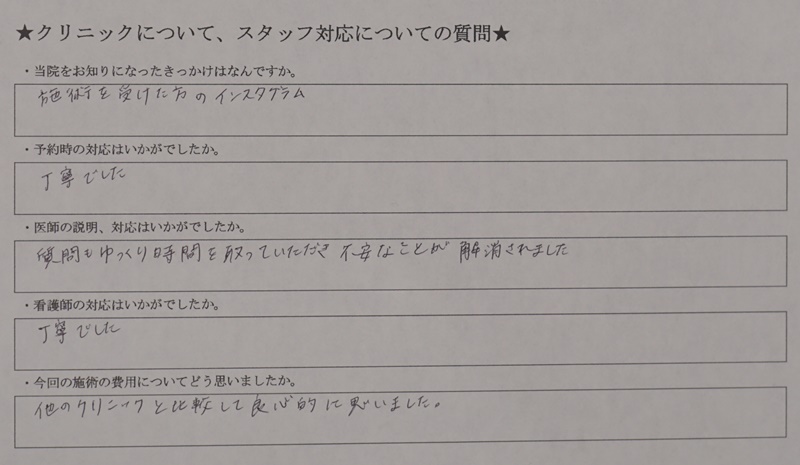 リスクや副作用: •腫れや内出血が出る •左右差が出ることがある •再発する可能性が否定できない