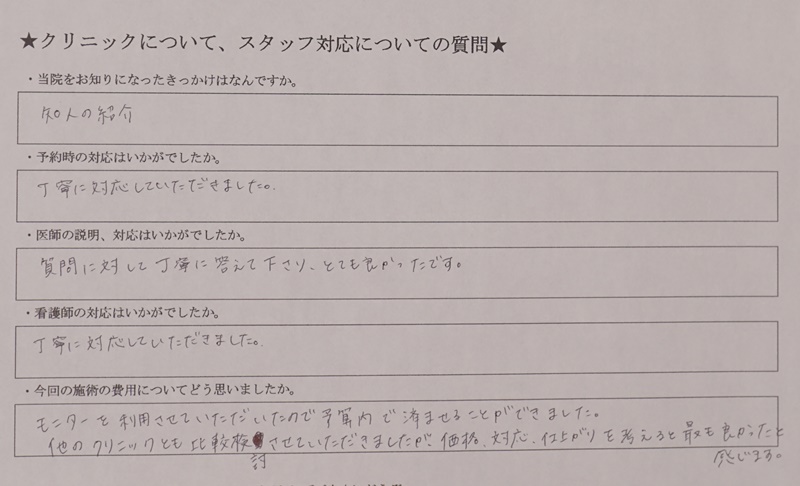 リスクや副作用: •腫れや内出血が出る •左右差が出ることがある •再発する可能性が否定できない