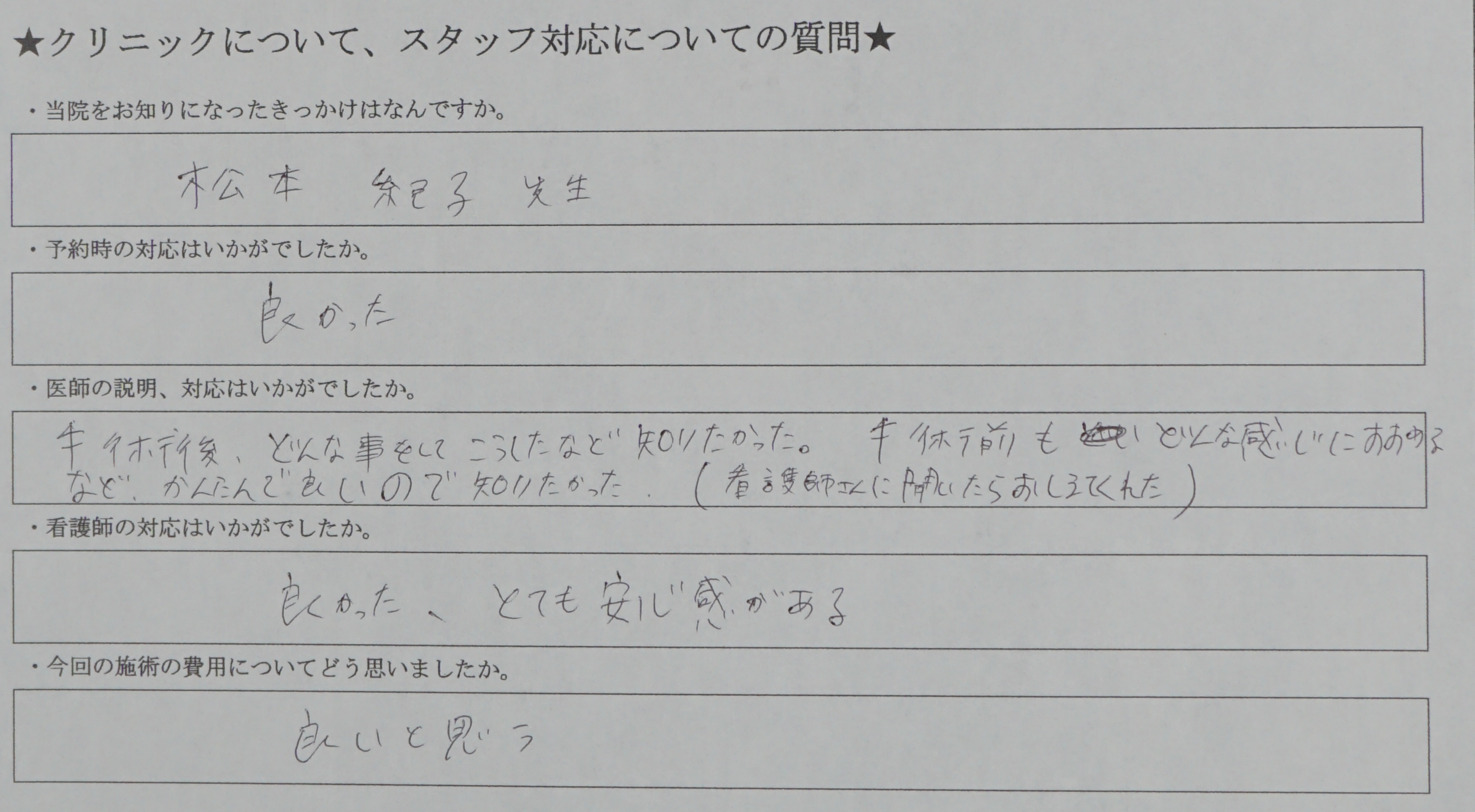 リスクや副作用: •腫れや内出血が出る •左右差が出ることがある •再発する可能性が否定できない