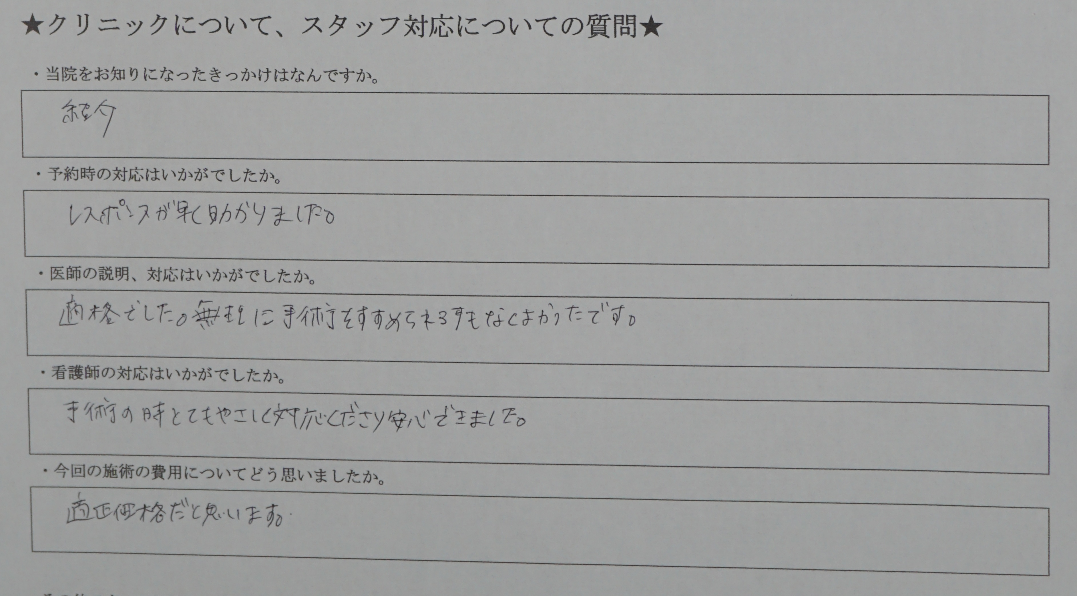対応に関するアンケート