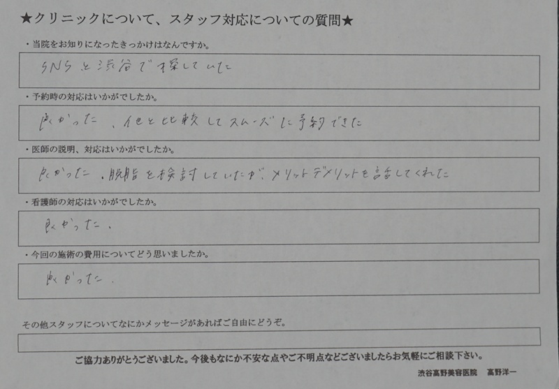 リスクや副作用: •腫れや内出血が出る •左右差が出ることがある •再発する可能性が否定できない