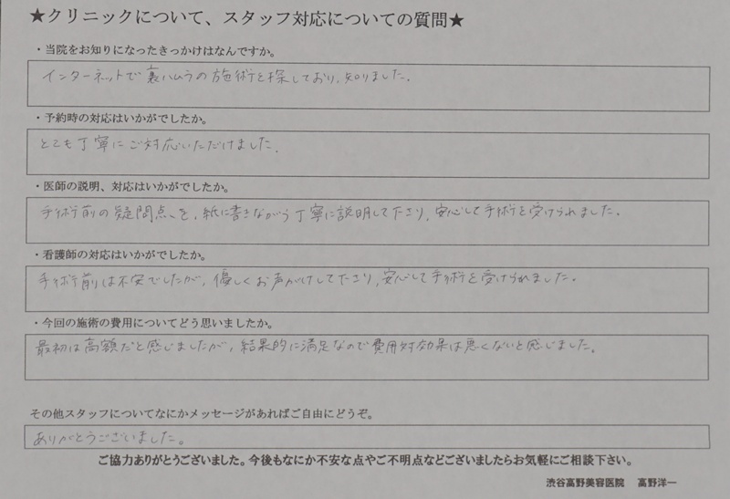 裏ハムラ法の手術を受けられた30代女性。