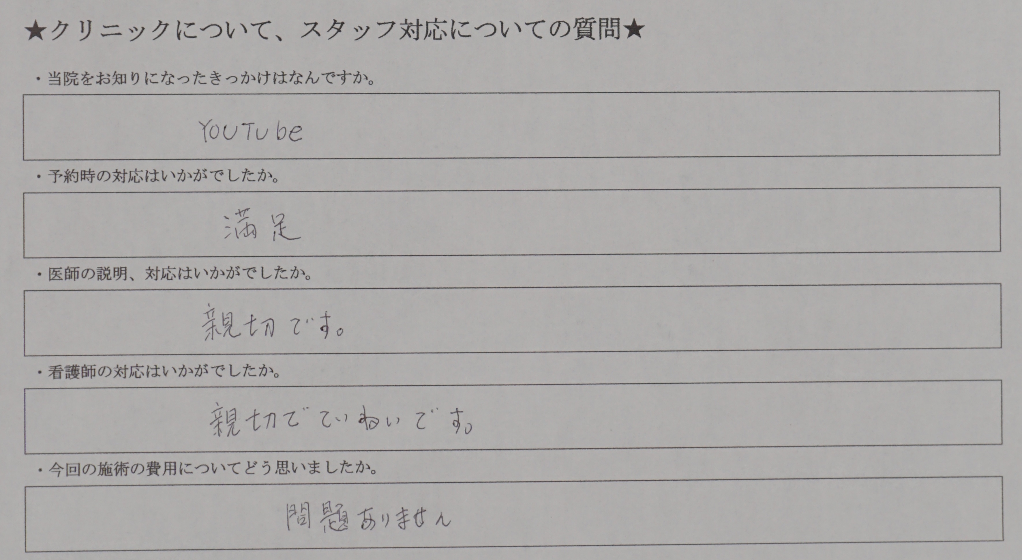 対応に関するアンケート