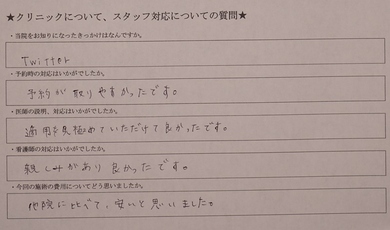 対応に関するアンケート