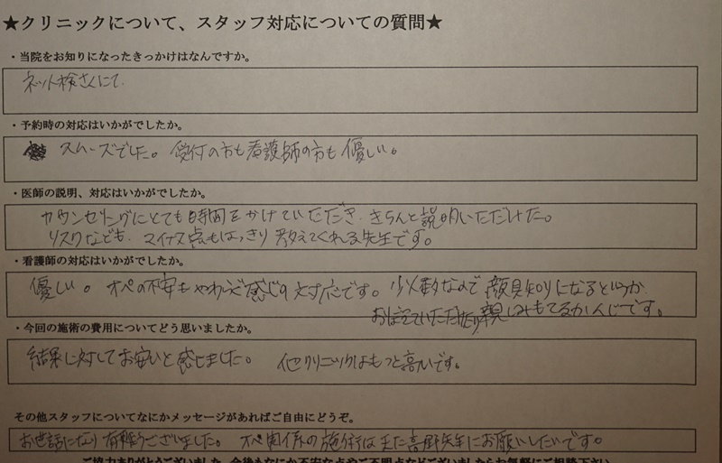 対応に関するアンケート