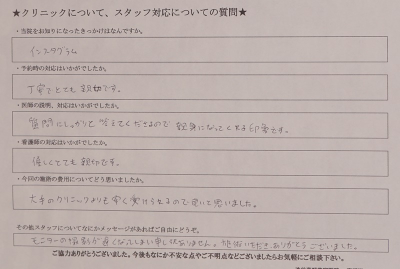 費用: •二の腕または肩(通常料金)250,800円(モニター料金)200,200円 •二の腕+肩(通常料金)297,000円(モニター料金)231,000円 •二の腕+肩+背中(通常料金)352,000円(モニター料金)297,000円 *別途 静脈麻酔 30,000円(税込)