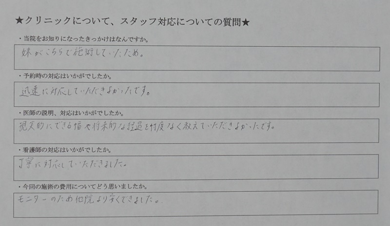 対応に関するアンケート