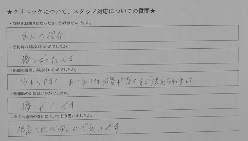 対応に関するアンケート