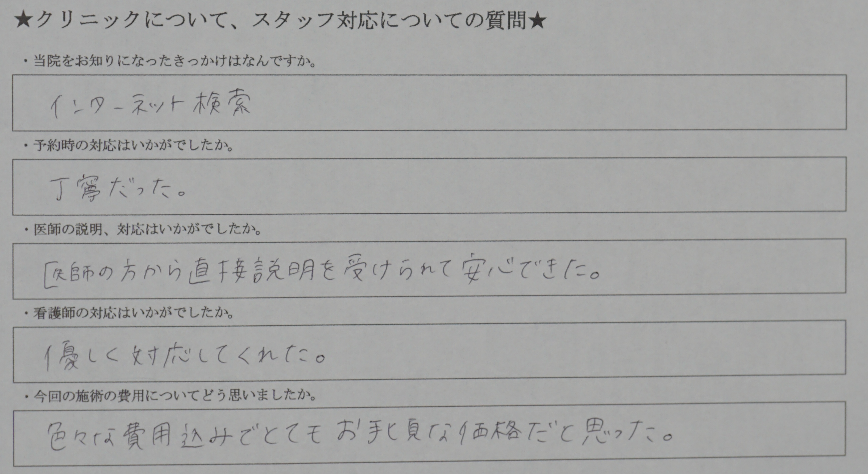対応に関するアンケート